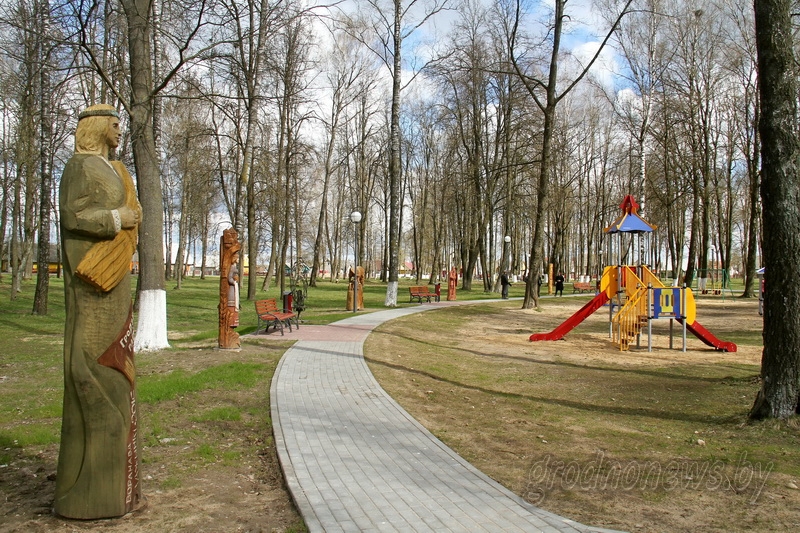 В благоустройстве городского парка в прошлом году накануне областного праздника «Дажынкі» участвовали все районы области. Они подарили городу деревянные скульптуры, олицетворяющие особенности районов. Полукольцом выстроились фигуры в парке. Интересно, переходя от одной к другой, пытаться угадать, какой регион Гродненщины их презентовал.