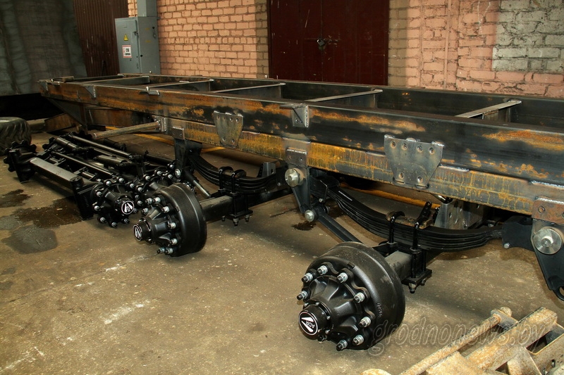 И, наконец, самый долгожданный момент: все части (узлы) прицепа, словно конструктор, соединяют вместе! Кузов и подвижной механизм ставят на шасси, и в таком виде прицеп отправляют на покраску. После нее на красивый серо-зеленый прицеп весом около девяти тонн устанавливают электрику, гидравлику, освещение, тормозную систему, наклейки-аппликации и каждый узел непременно проверяют на соответствие технической документации.