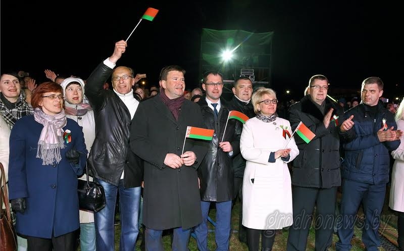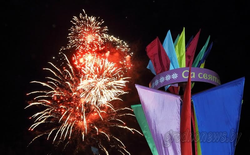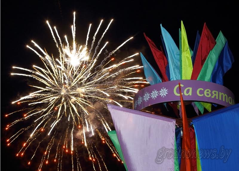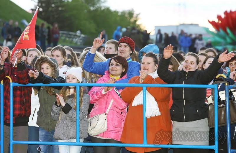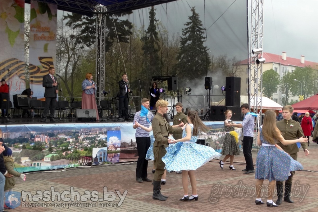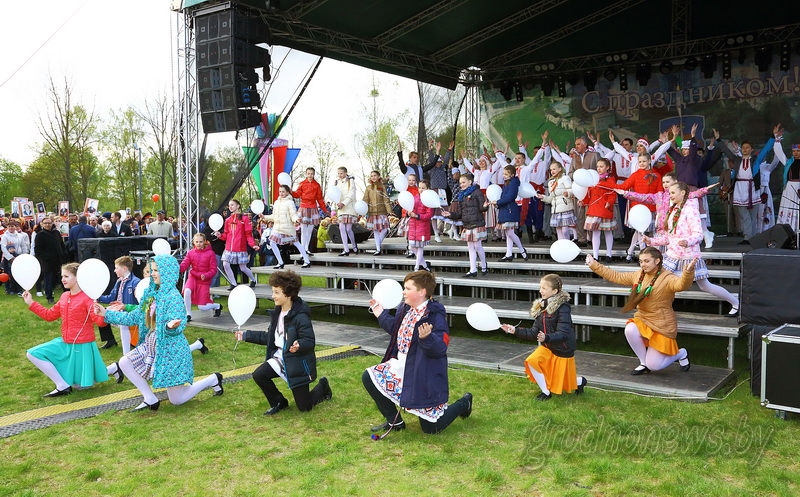 С концертом выступил духовой оркестр Гродненского областного управления МЧС. Праздничную программу подготовили студенты Гродненского госуниверситета имени Янки Купалы. Подарком для гродненцев стали выступления белорусских артистов. На сцену вышли Бадя и Svist, Саша Немо. Их сменила гродненская кавер-группа No limit. Под ее аккомпанемент гродненцы исполнили всеми любимую «Катюшу». Завершился праздник массовым исполнением песни «День Победы» и праздничным салютом.