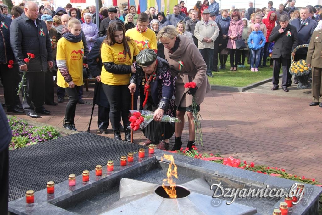 Война унесла жизни более пятидесяти тысяч жителей Гродненщины. В память о них были возложены гирлянды Памяти, венки и цветы к Вечному огню.