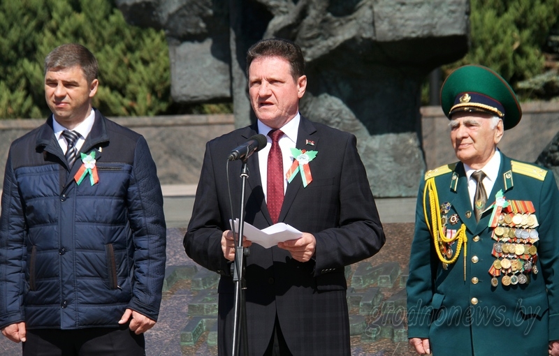 У мемориального ансамбля воинам-пограничникам на торжественный митинг, посвященный Дню Государственного герба Республики Беларусь и Государственного флага Республики Беларусь, собрались ветераны, представители органов власти, трудовых коллективов, общественных организаций, учебных заведений города.