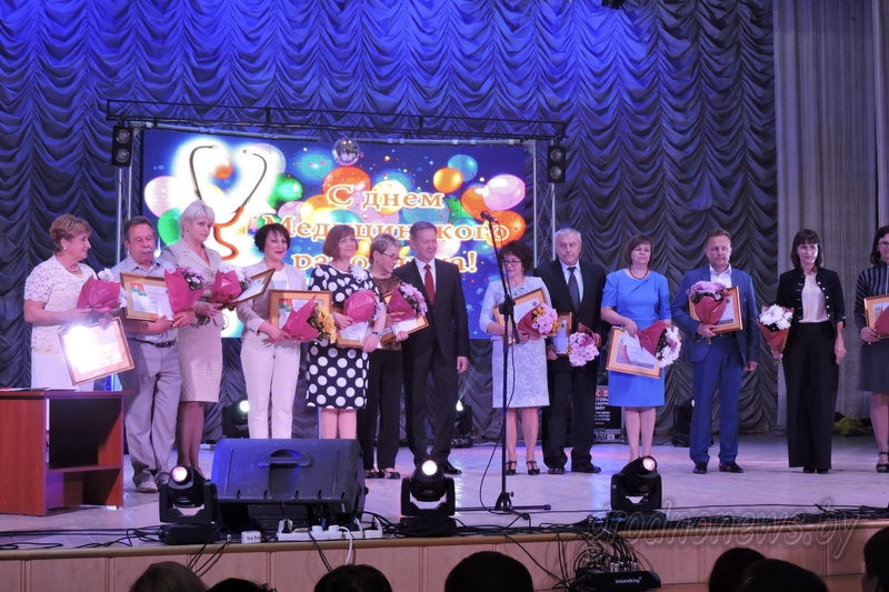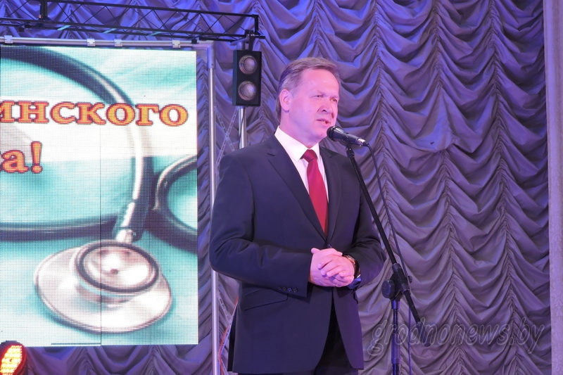 Со сцены Гродненского государственного медицинского университета, где проходило торжество, слова благодарности в адрес представителей различных подразделений медицинской отрасли адресовали заместитель министра здравоохранения Беларуси – директор департамента фармацевтической промышленности Валерий Шевчук, председатель областного Совета депутатов Игорь Жук, начальник управления здравоохранения облисполкома Андрей Стрижак, заместитель председателя областного объединения профсоюзов Андрей Кардаш, председатель областной организации Белорусского профсоюза работников здравоохранения Владислав Голяк.