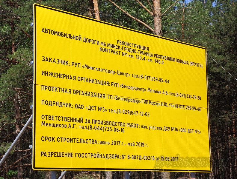 В торжественной церемонии по поводу начала работ по реконструкции участка международной автомобильной дороги М6 Минск–Гродно – граница Республики Польша (Брузги) приняли участие заместитель Премьер-министра Республики Беларусь Анатолий Калинин, председатель Гродненского облисполкома Владимир Кравцов, глава представительства Всемирного банка в Беларуси Ян Чул Ким, министр транспорта и коммуникаций Анатолий Сивак, заместитель председателя облисполкома Владимир Дешко, руководители проектных и дорожных организаций, которые ведут реконструкцию автомагистрали.