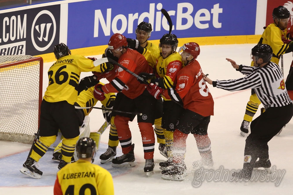 В Гродно соскучились по большому хоккею. Очереди на входе, аншлаг на трибунах - в Ледовый дворец вернулся привычный антураж решающих баталий. Главный тренер «Вены» Серж Обен после игры признается, что его хоккеисты растерялись в стартовые минуты. Оно и не удивительно, ведь в Гродно умеют и любят болеть. На представлении команд фанаты и любители хоккея устроили яркий перфоманс, разукрасив арену в цвета любимого клуба.