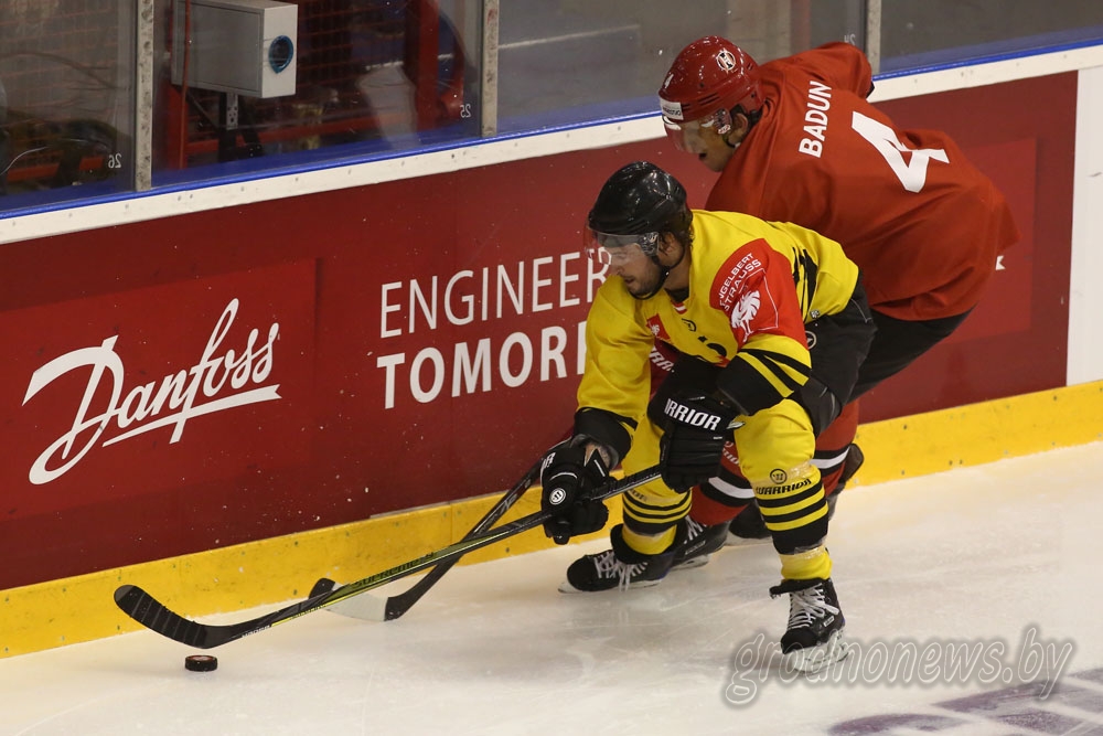Овертайм надолго не растянулся. Играли его команды в формате 3 на 3. При малом количестве игроков на первое место выходит физическая готовность, мастерство и, наверное, удача. Ее было больше сегодня у хозяев. Александр Жидких выскочил на ворота и бросил в ближнюю девятку, подарив Гродно праздник. 5:4 - есть первая победа в этой Лиге чемпионов!