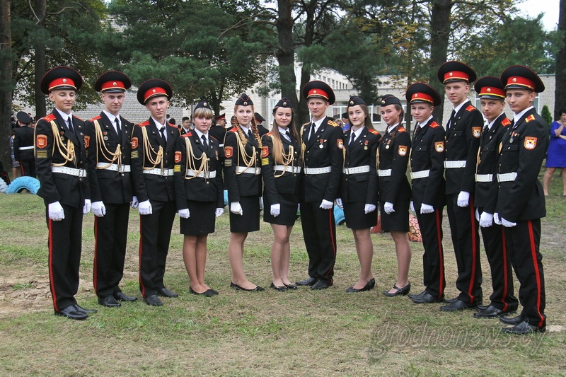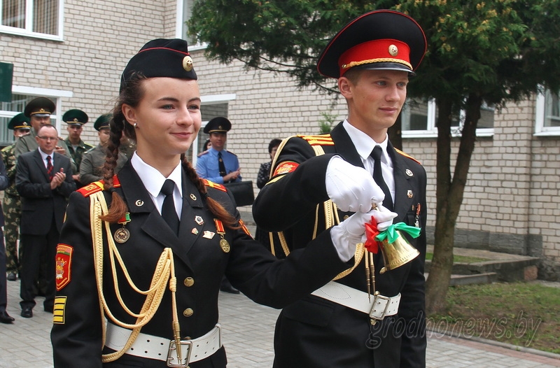 Торжество в кадетском училище прошло по всем традициям этого учебного заведения. Построение на плацу, 108 парней с военной выправкой и спортивных девчонок, нарядная форма, которая сидит на них как влитая, четкий шаг. Вице-сержант Сергей Сильванович, одиннадцатиклассник училища и председатель молодежного парламента при Гродненском областном Совете депутатов, поднял Государственный флаг Республики Беларусь. В адрес ребят и присутствовавших на празднике членов их семей звучали поздравления Владимира Кравцова, председателя правления Гродненской областной ассоциации местных Советов депутатов генерал-майора Анатолия Никитина, директора училища полковника Николая Жигэу. В подарок учреждению образования преподнесли сертификат на мультиборд на пять тысяч рублей, партию фруктов. На праздник в кадетское училище в числе почетных гостей прибыли исполняющий обязанности военного комиссара Гродненской области полковник Александр Хорошун и начальник управления образования облисполкома Александр Сонгин. Напутственные слова кадетам произнесли одиннадцатиклассники. Первый звонок доверили также будущим выпускникам – председателю совета командиров училища Никите Евцу и рекордсменке области по пожарно-спасательному спорту на чемпионате мира Веронике Евтух.