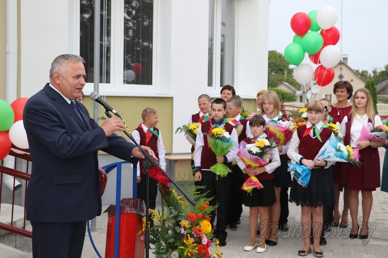 Этим летом здесь появилась большая и светлая пристройка, которая более чем в два раза увеличила площадь школы. Поздравить с обновлением, для многих ставшим новосельем, коллектив школы, а это 16 педагогов и 72 ученика, приехали помощник Президента – инспектор по Гродненской области Сергей Ровнейко, первый заместитель начальника управления образования облисполкома Галина Курганская, председатель Вороновского райисполкома Николай Розум и другие почетные гости.