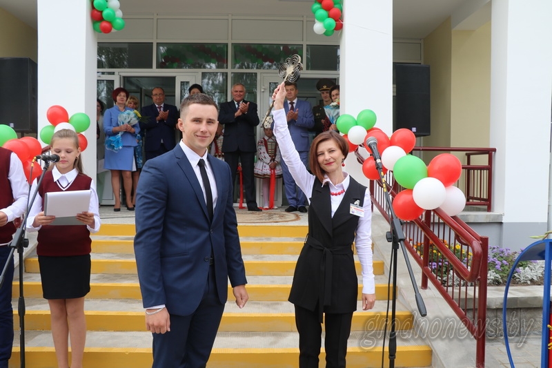 Также Сергей Ровнейко вручил коллективу подарок – сертификат на 1000 рублей для приобретения компьютерной техники. Но главным подарком к новому учебному году коллектив считает саму пристройку к школе. Возвели ее в течение лета. Основные работы выполняло Лидское ПМК 169. К слову, там прорабом трудится один из выпускников школы в Больтишках Дмитрий Почобут. Поэтому именно этот объект для него был особенно ответственным. Символический ключ от новой части школы Дмитрий вручил директору Светлане Вороновской.