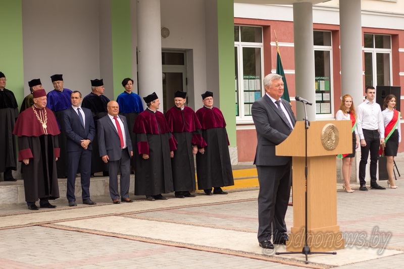 - Будущее аграрной отрасли за новыми технологиями, и мы рассчитываем, что сегодняшние студенты гродненского университета, который имеет большой опыт новаторства и солидную научную школу, также внесут в их развитие свой вклад, - отметил Иван Жук, поздравляя коллектив университета от имени руководства области. - Вы выбрали правильный путь, поступив в один из лучших вузов страны. Сегодня трудиться в аграрной отрасли почетно, и в то же время это высокая ответственность в решении задач государственной важности. Чтобы вы смогли получить нужные для этого знания, овладеть всеми премудростями таких нужных стране профессий, в университете созданы все условия.