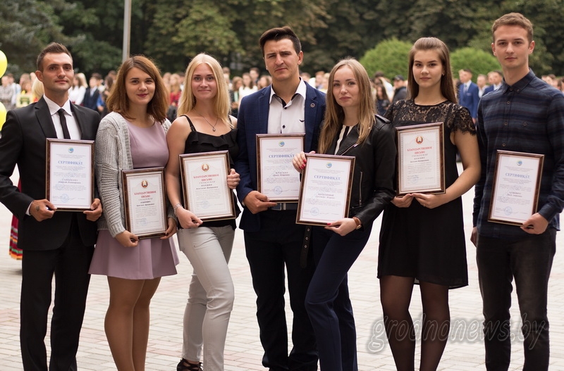 На торжестве было озвучено приветствие, которое в День знаний адресовал сотрудникам и студентам ГГАУ министр сельского хозяйства и продовольствия Леонид Заяц. Ряд преподавателей вуза отмечен наградами министерства. Поощрения за хорошую учебу и активное участие в общественной жизни удостоились и студенты- старшекурсники. Шестерым из них вручены именные стипендии областной организации Белорусского профсоюза работников агропромышленного комплекса.