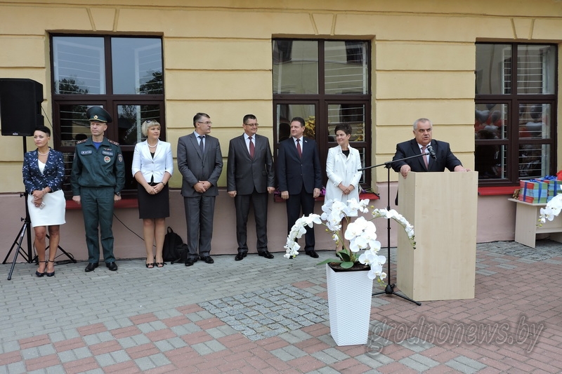 Владимир Дешко вручил в подарок гимназии от имени облисполкома оргтехнику. Поздравили педагогический коллектив гимназии, учеников и их родителей с началом нового учебного года председатель Гродненского городского Совета депутатов Борис Федоров, глава администрации Ленинского района Гродно Иван Курман.