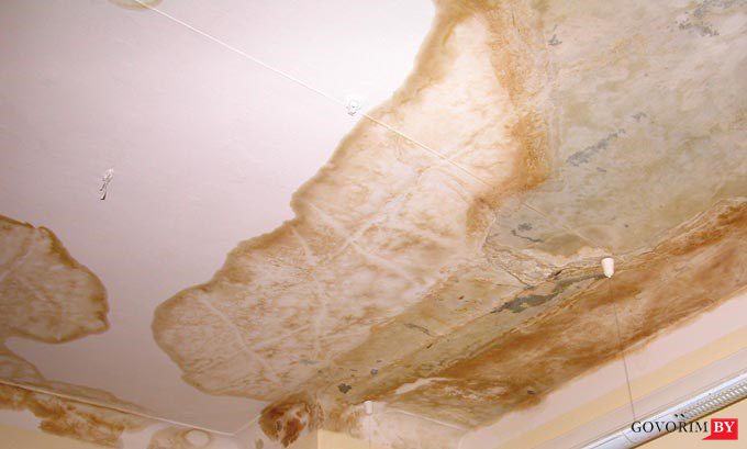 Стены и пол были в хорошем состоянии, а вот потолок оставлял желать лучшего. Соседи затопили. Жёлтые подтёки и облупившаяся штукатурка не радовали.