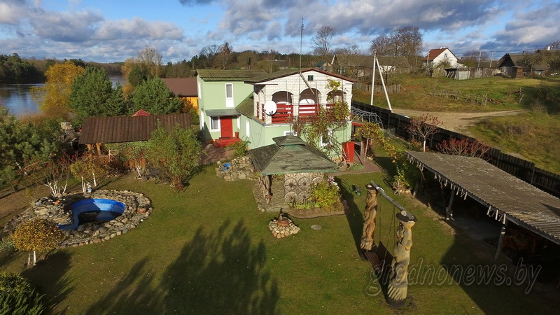 На правом берегу Немана, чуть дальше от реки, за деревней Микелевщина есть еще одно райское место с домом на острове. Этот остров расположен посреди одного из озер фермерского хозяйства «Мечта».