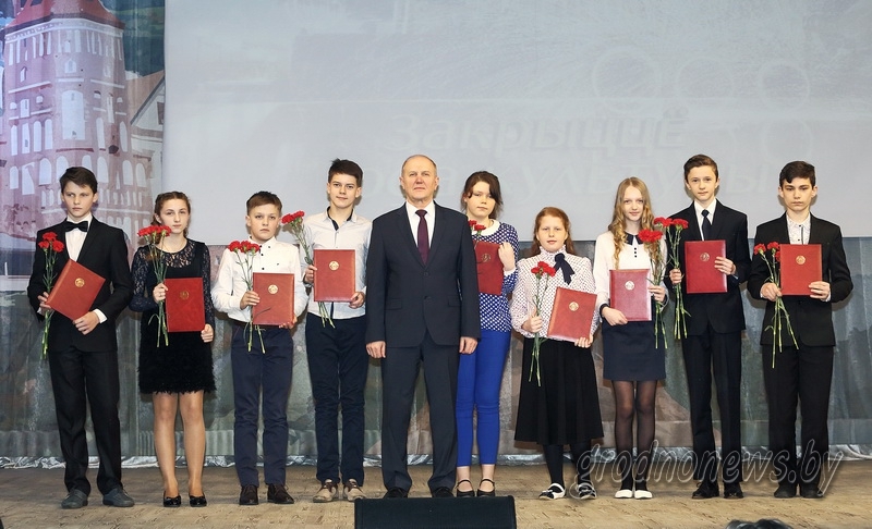 152 выпускника гродненских школ, гимназий и лицея окончили школу с медалями. Накануне выпускных вечеров всех их пригласили в актовый зал колледжа искусств, где прошла торжественная церемония вручения самых важных наград в жизни вчерашнего школьника и аттестатов о среднем образовании. Медалистов поздравляли и вручали награды заместитель председателя облисполкома Виктор Лискович, председатель горисполкома Мечислав Гой, главы администраций Ленинского и Октябрьского районов города Гродно Иван Курман и Олег Белинский, начальник управления образования облисполкома Александр Сонгин.