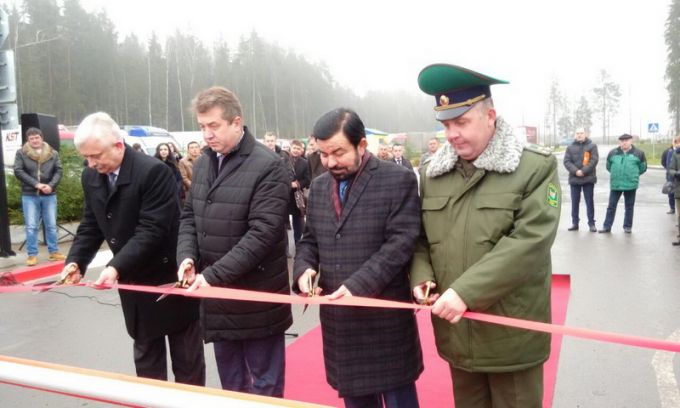 В ноябре в пункте пропуска “Котловка” на границе Беларуси с Литвой начала работать система электронной очереди транспортных средств. Помощник Президента Республики Беларусь – инспектор по Гродненской области Сергей Ровнейко, председатель Островецкого райисполкома Игорь Шалудин, инвестор Седат Игдеджи и начальник управления пограничного контроля Госпогранкомитета Республики Беларусь Олег Ляшук перерезали символическую красную ленту и осмотрели в действии комплекс электронной очереди.