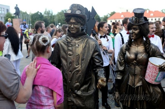 На два дня исторический центр Гродно превратился в одну большую сцену, на которой выступали профессиональные фокусники, артисты, аниматоры, мимы и любители уличного искусства. Фестиваль собрал около 60 коллективов и 300 участников из Польши, России, Литвы, Украины и Беларуси. Посмотреть на это удивительное зрелище съехались жители из многих населенных пунктов Гродненщины.