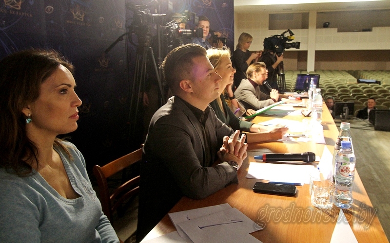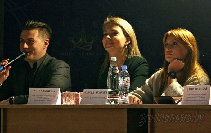 Вместе с ведущей телеканала «ОНТ» Люцией Геращенко отбирали гродненских красавиц для участия в «Мисс Беларусь-2018» ее коллеги Денис Курьян и Иван Подрез, а также директор Национальной школы красоты Елена Троицкая, «Мисс Беларусь-2008» Ольга Хижинкова и другие.