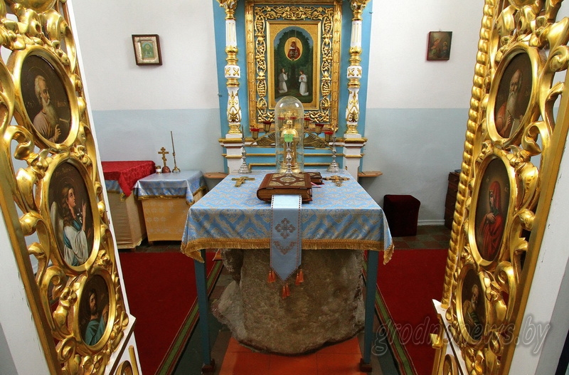Однажды дети, игравшие на склоне холма, увидели сидящую на валуне Богородицу с утерянным образом в руках. Бросились они рассказать об этом родителям. А когда вернулись – на камне осталась лишь Жировичская икона. Потемневшая, со следами огня, но целая и невредимая. Место это тут же огородили, а в XVII веке построили храм.