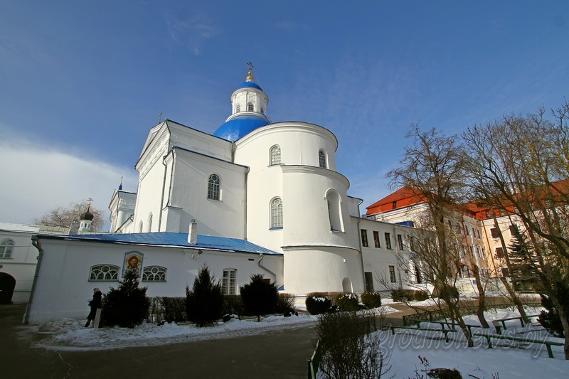 Храм в Жировичах по подобию римской базилики возвели в 1769 году на средства пинской ловчей Элеоноры Головчиной. Он и сам словно устремлен в небо – это самое высокое здание монастырского комплекса.