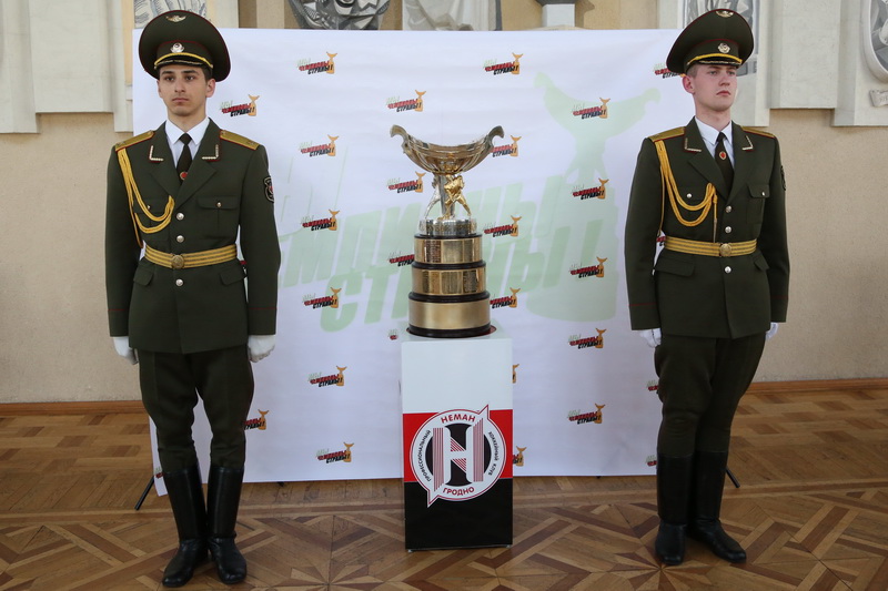 У входа в драмтеатр фанаты хоккейного клуба, юные хоккеисты и неравнодушные к спорту гродненцы выстроились в живой триумфальный коридор и овациями встречали каждого игрока дивизиона. Болельщики выкрикивали их имена, пытались дотронуться до игроков любимой команды, каждую секунду мелькали вспышки фотоаппаратов. А над армией поклонников клуба величаво возвышался главный трофей – Кубок Президента Беларуси – не просто приз, а признание: «Неман» – чемпион.