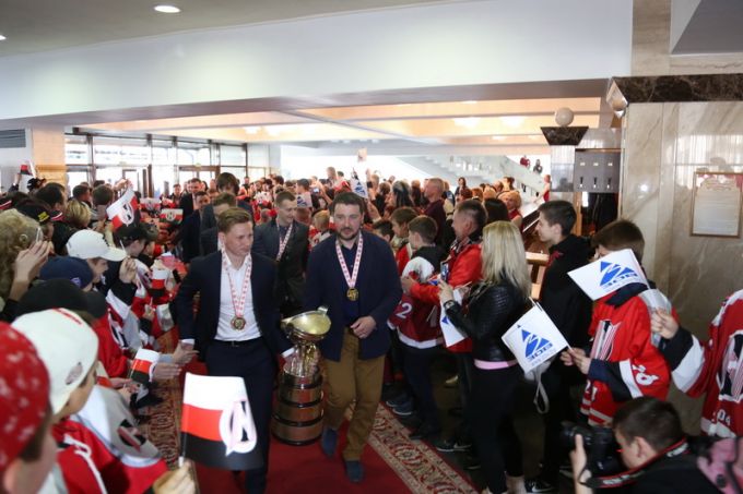 Сегодня также исполнилась и мечта многих болельщиков: увидеть своих кумиров не на льду, а на расстоянии вытянутой руки, взять автограф, сфотографироваться на память и поздравить с победой – сотни людей воспользовались уникальной возможностью стать сопричастными к этому спортивному празднику.