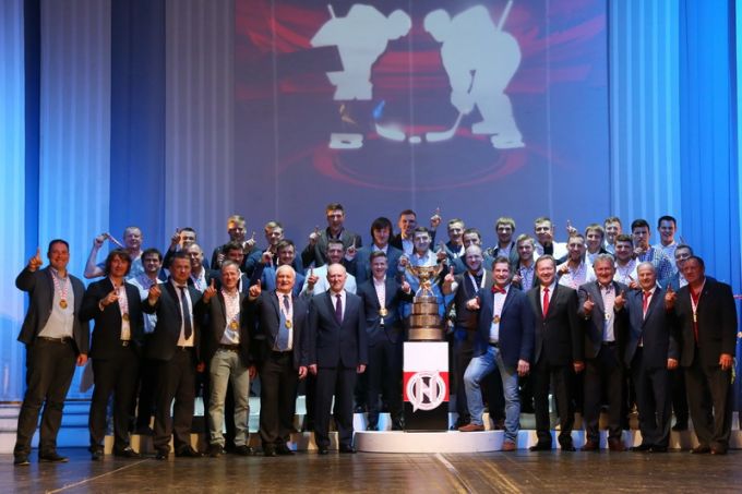 «Неман» – лучший, «Неман» – первый, «Неман» – чемпион: ликуя, скандировали сотни болельщиков. Несмотря на то, что команда второй год подряд становится победителем, к подобным праздничным вечерам гродненцы еще не привыкли – сегодня Гродненский драмтеатр едва вместил желающих стать частью победной истории прославленного хоккейного клуба «Неман» – семикратного чемпиона страны по хоккею.