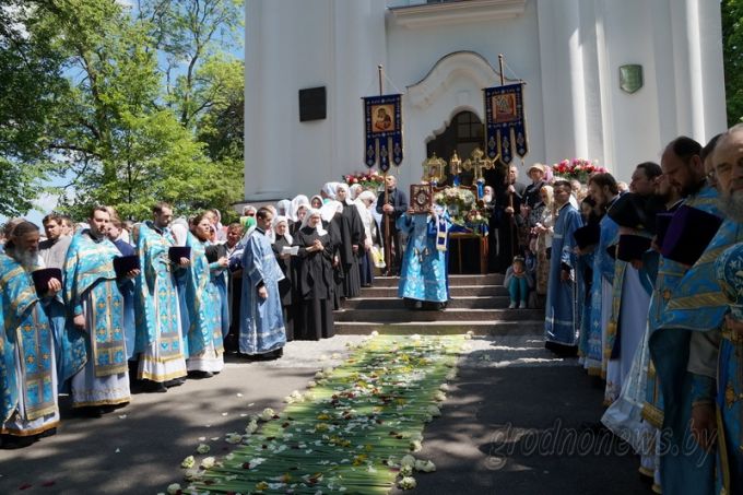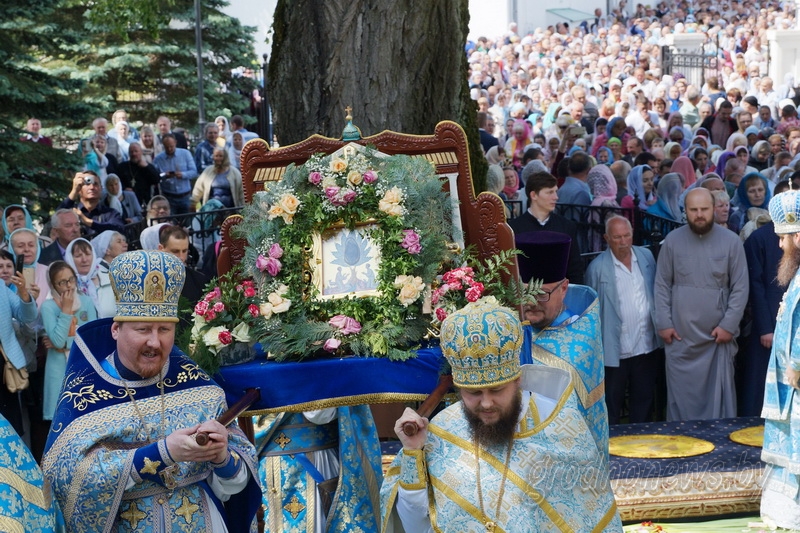 По окончании литургии архипастыри и сослужившие им священнослужители, все молящиеся прошли Крестным ходом с Жировичской иконой Пресвятой Богородицы к Явленскому храму, где перед чудотворным образом был отслужен молебен с акафистом Жировичской иконе Божией Матери.