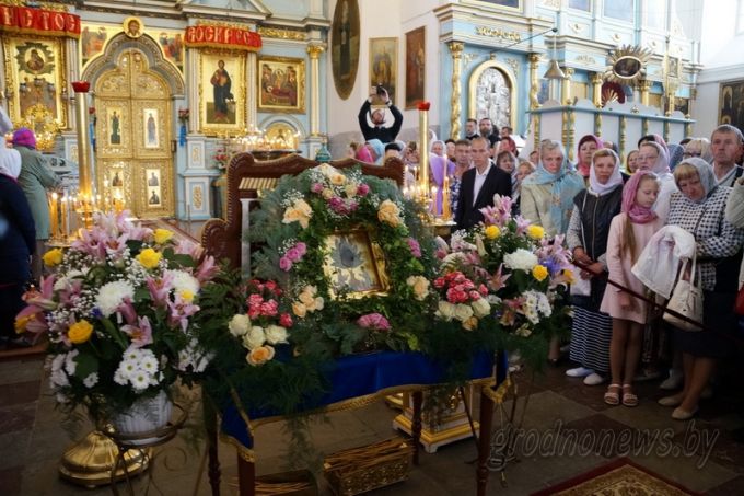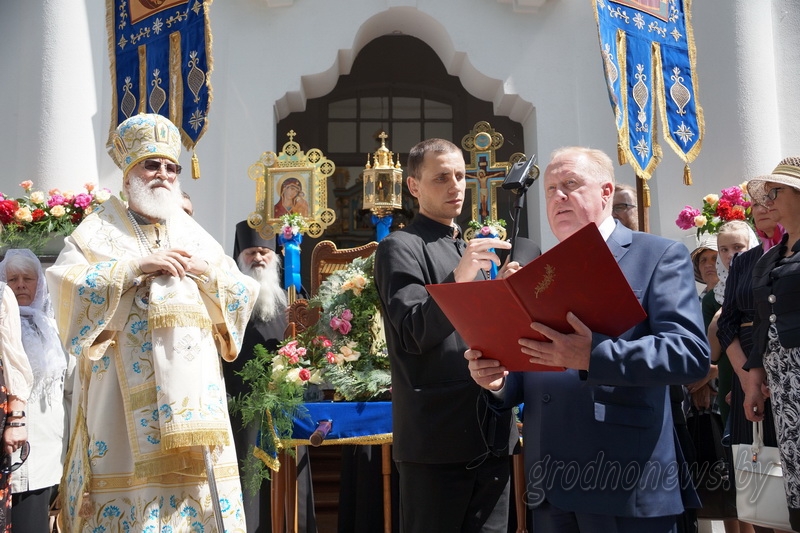 Леонид Павлович с удовлетворением отметил, что благодатное место принимает все больше людей, и праздник из всеправославного становится всенародным. Виктор Андреевич вручил митрополиту приветственный адрес Гродненского облисполкома.
