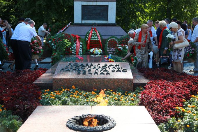 Руководство области и города, ветераны войны и труда, представители предприятий, организаций и учреждений, силовых структур, общественных объединений, молодежь, жители города отдали дань памяти не вернувшимся с войны с войны.