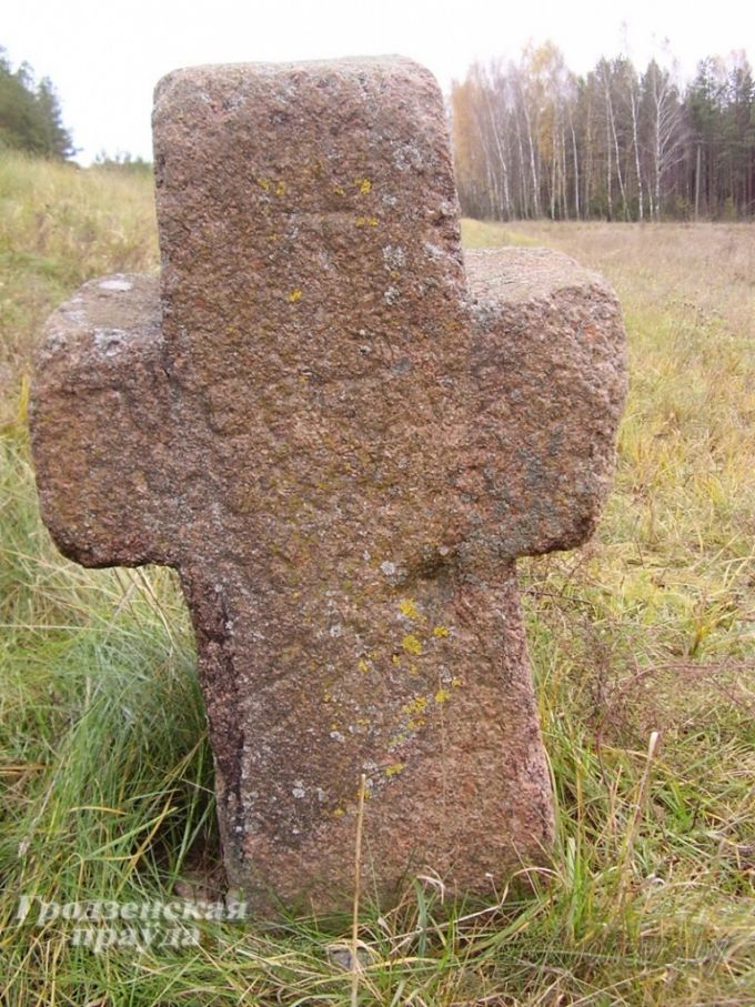 История не сохранила точное место их упокоения. Люди считают, что случилось это на запаханном за деревней поле. Если спуститься на несколько метров по откосу, то там среди травы увидите необычный каменный крест. Такое впечатление, что растет он откуда-то из глубины…