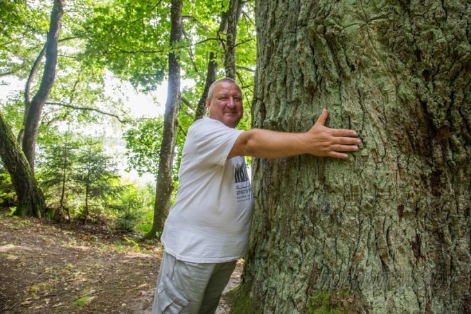 – Лесники сделали вывод, что дубу 322-323 года. Хотя он уже «пожилой», но состояние его хорошее, дерево здоровое, не дуплистое, простоит еще лет 200. Чтобы продлить ему жизнь, удаляем лишние ветки, – рассказал Юрий Зайко. – Хотим сохранить то, что имеем. К тому же дубов в заказнике осталось немного, высаживаем, но они тяжело приживаются. В основном преобладает смешанный лес: береза, ель, сосна, граб.