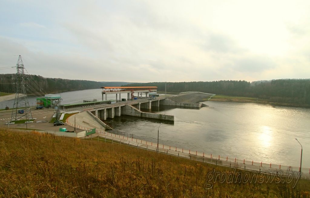 Путешествие по водохранилищу начнем с объекта, ради которого оно и создавалось. Строительство Гродненской ГЭС в 2008 году стало одним из амбициозных проектов: это самая первая в стране среднемощная гидроэлектростанция.