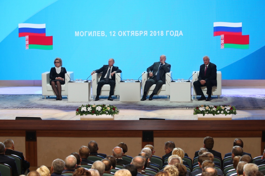 Пленарное заседание V Форума регионов Беларуси и России началось в Могилеве с участием руководителей двух государств Александра Лукашенко и Владимира Путина.