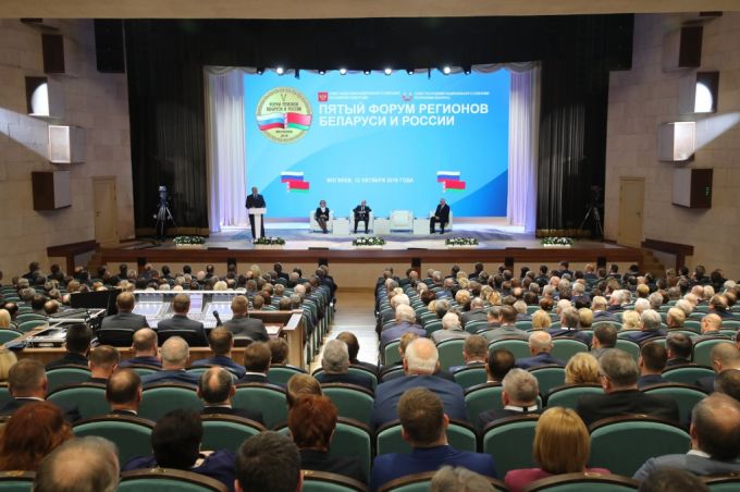 V Форум регионов Беларуси и России проходит в Могилеве. В нем принимают участие лидеры государств Александр Лукашенко и Владимир Путин, а также более 20 российских губернаторов.