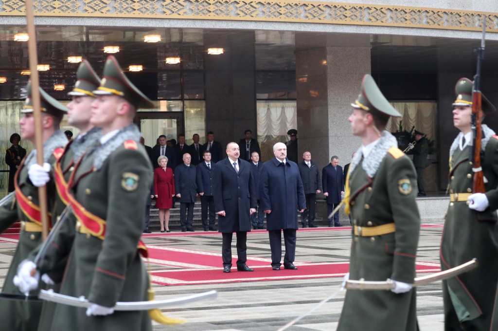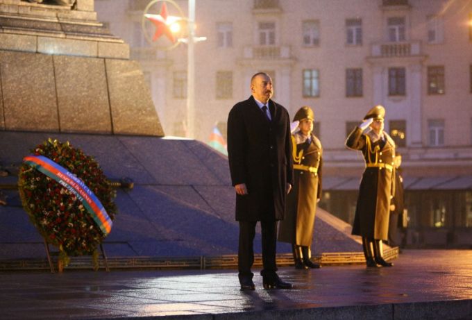 Азербайджанский лидер прибыл в Беларусь накануне. Утром 19 ноября до официальных переговоров Ильхам Алиев возложил цветы к монументу Победы, а также посетил Торговый дом Азербайджана, который был открыт в Минске в мае минувшего года. Президент ознакомился с продукцией, поинтересовался, как идет ее реализация в Беларуси.