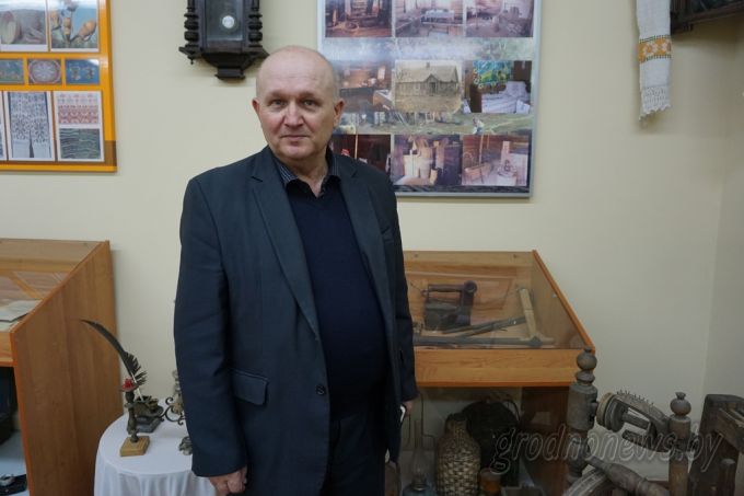 Ромуальд Владиславович Бень, учитель истории и обществоведения Конвелишского УПК, местный краевед, изучающий происхождение гидронимов и названий населенных пунктов Вороновского района