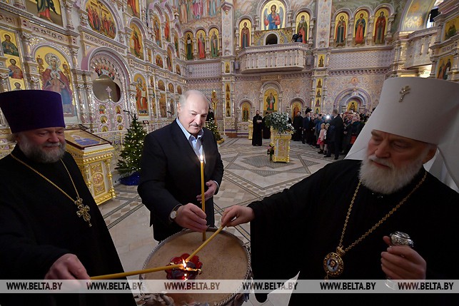 Александр Лукашенко зажег рождественскую свечу в Храме-памятнике в честь Всех Святых