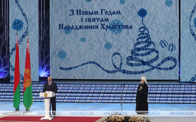 Я также, уважаемые друзья, всех вас, элиту нашей интеллигенции, нашего общества, хочу поздравить с Новым годом и Рождеством Христовым. Счастья, добра и мира вам и вашим семьям!Понятие "духовное возрождение" стало гимном судьбы белорусского народа - Александр Лукашенко