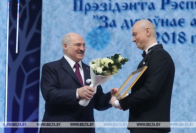 Во время вручения наград глава государства отметил, что в этот праздничный вечер во Дворце Республики чествуют людей с большим сердцем, отдающих свою любовь, внимание и теплоту детям с трудной судьбой, служителей церкви, подаривших Новому Завету новое звучание на белорусском языке.