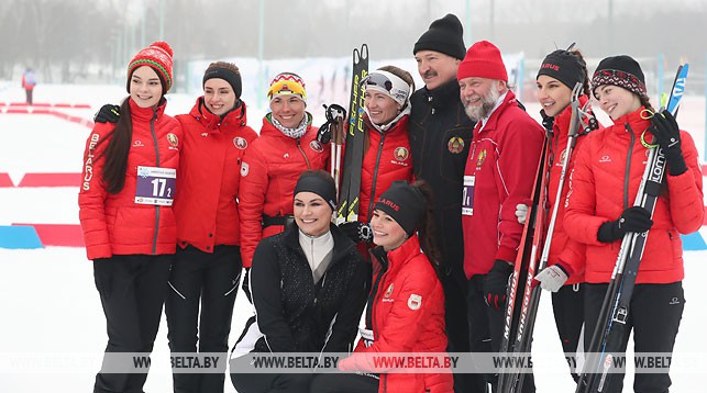 В составе эстафетного квартета вместе с главой государства, который завершал гонку, выступили Светлана Коношенко, четырехкратная олимпийская чемпионка Дарья Домрачева и Николай Лукашенко.