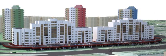 Также в высотных домах предусмотрены нежилые помещения на первых этажах для размещения объектов торговли и обслуживания. Рядом с ними запроектировано место для строительства нового торгового центра с автостоянкой, которое будет предложено инвесторам.