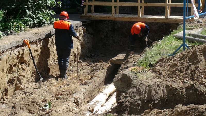 По словам, жильцов замену теплотрассы в их доме уже проводили около двух лет назад. То, что трубы и изоляция достаточно новые, стало видно, когда рабочие сняли плиты. К слову, два года назад кусты, которые росли возле подъездов, рубить не пришлось.