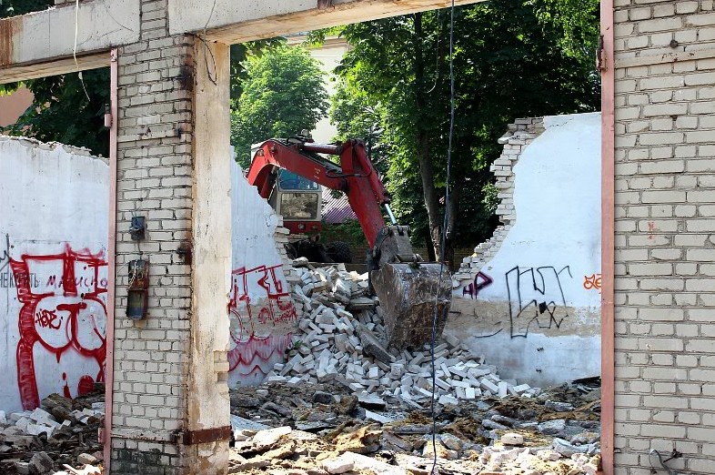 В центре Гродно сносят бывшие гаражи КГБ