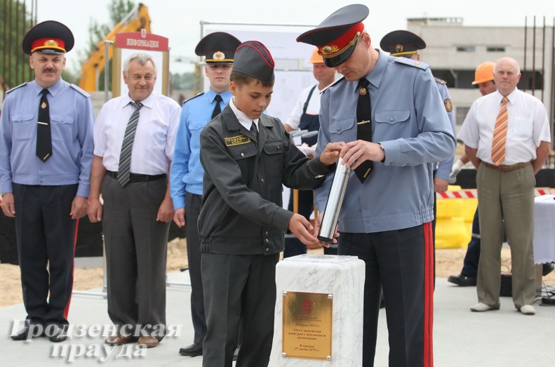 Капсулу с посланием потомкам заложил в основание здания Ленинского райотдела милиции министр внутренних дел Беларуси Игорь Шуневич. Председатель облисполкома Семен Шапиро подчеркнул, что для гродненцев открытие новых объектов уже стало привычным делом. Немало зданий социальной сферы, системы МВД построено либо реконструировано за последнее время, строительные работы на многих объектах ведутся и сегодня. Председатель облисполкома подчеркнул, что средства, выделяемые на развитие материальной базы этой сферы, окупаются спокойствием и безопасностью населения.