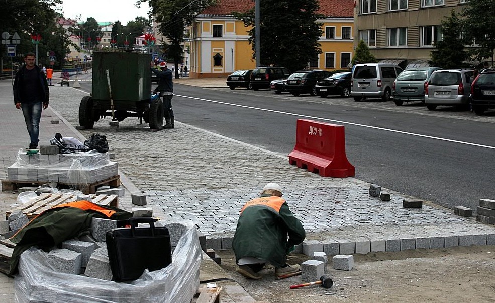 Сегодня, 16 июля, улицу Дзержинского в Гродно уже с утра открыли для движения транспорта. Общественный транспорт появится на улице только после того, как закончатся работы по укладке брусчатки в “карманах” вдоль остановок.