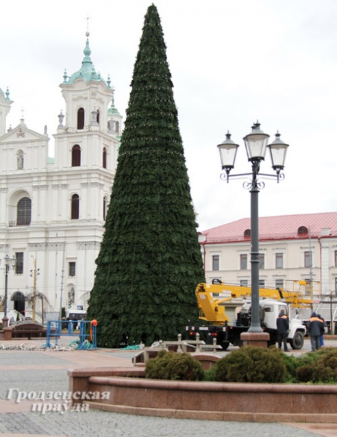 В Гродно начали устанавливать новогодние елки