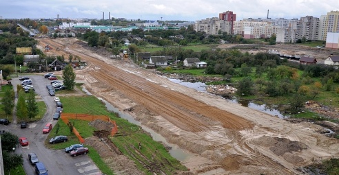 Хотите узнать больше? Работа по соединению улицы Курчатова в Гродно идет полным ходом. Здесь ведется прокладка подземных коммуникаций, дорожники насыпают песок для
