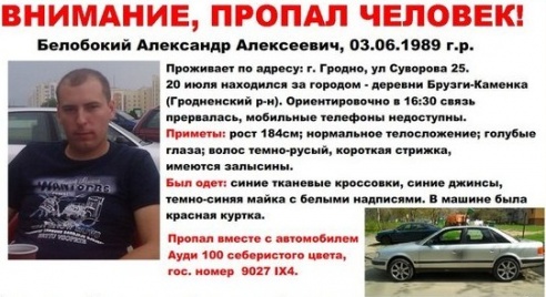 Хотите узнать больше? 20 июля 2013 года пропал Белобокий Александр. Последний раз его видели в д. Брузги-Каменка. Около 16.30 связь с ним прервалась, а телефоны оказались