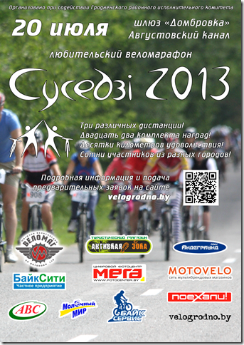 Хотите узнать больше? 20 июля на Августовском канале состоится третий ежегодный любительский веломарафон “Суседзi 2013″. В этом году организаторы подготовили три