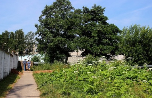 Рядом с жилой застройкой на улице Терешковой в Гродно никто не обращает внимания на заросли борщевика